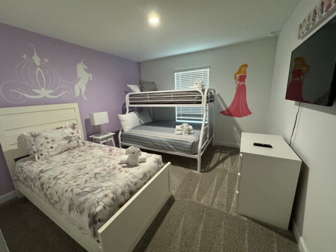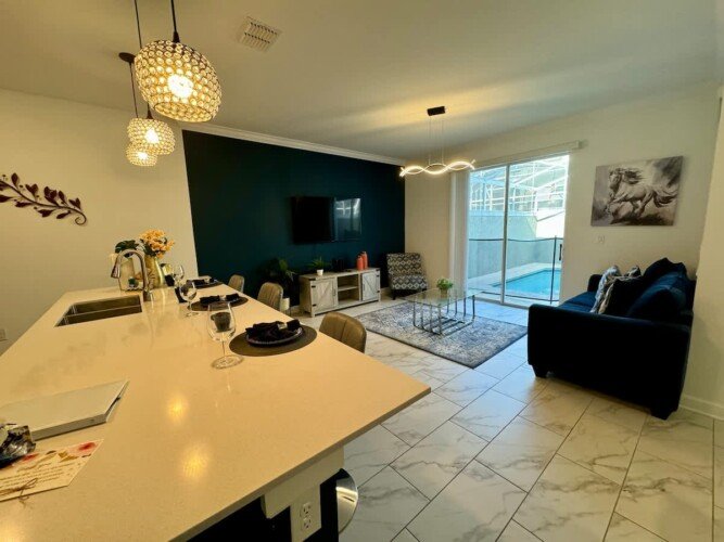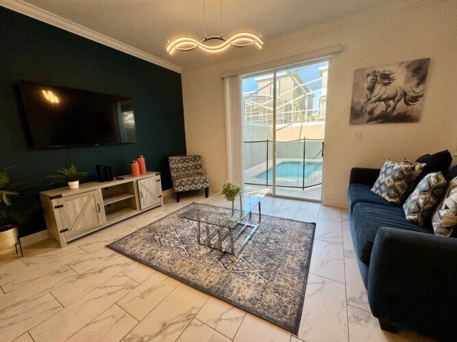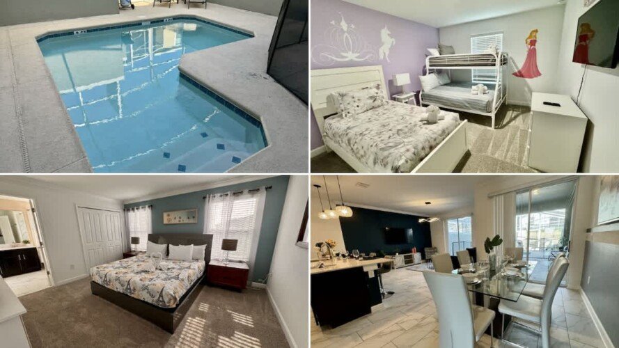Welcome to your dream vacation home! This spacious retreat features a private pool, modern kitchen, and a stylish living area, perfect for families and groups. Enjoy top Orlando attractions just minutes away, including Disney World, Universal Studios, and SeaWorld. Relax in comfort with air conditioning, Wi-Fi, and convenient amenities. Located in a secure, gated community, you’ll have access to the clubhouse, pools, tiki bar, and sports facilities.
