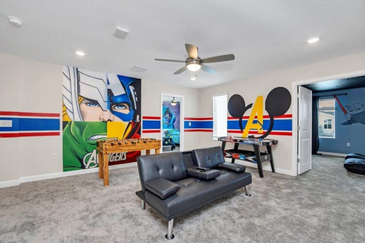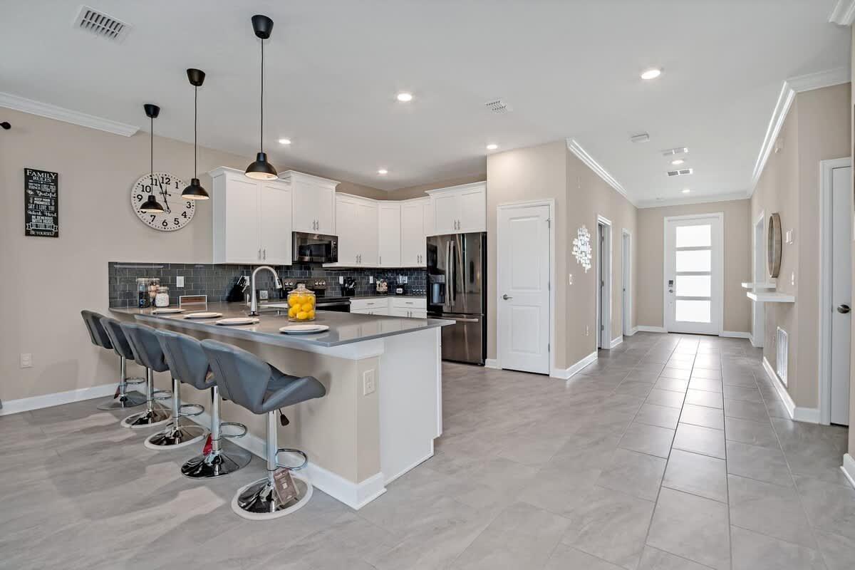 Step into unparalleled comfort and luxury in our Brand New Single Family Home nestled in the heart of the vibrant Storey Lake Community. Boasting an impressive 9 bedrooms, 5 bathrooms, and a spacious living area of 4500 square feet, this home is the perfect getaway for large groups and families. Whether you’re in town for a fun-filled Disney vacation or a relaxing retreat, this property promises an unforgettable stay accommodating up to 21 guests.