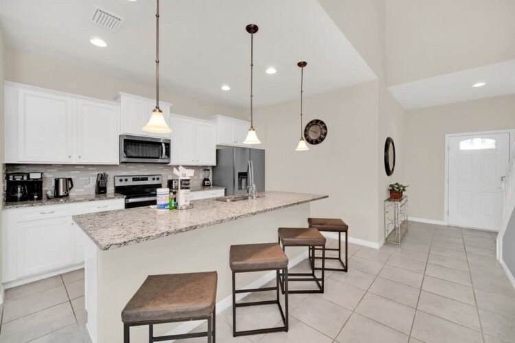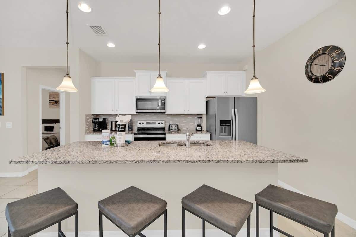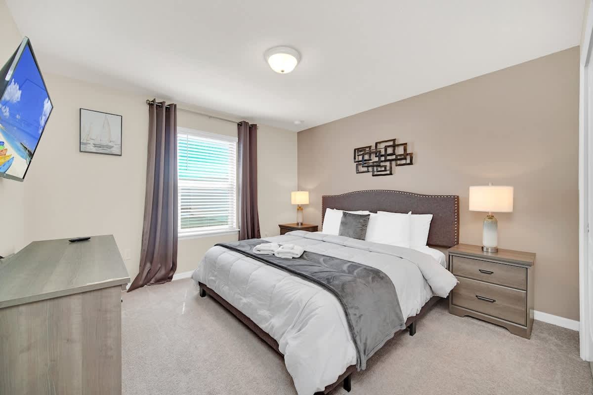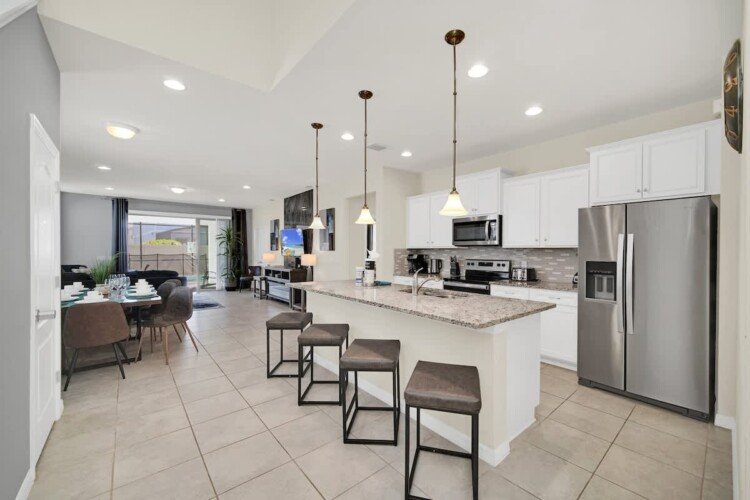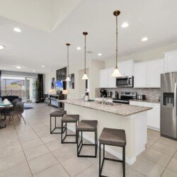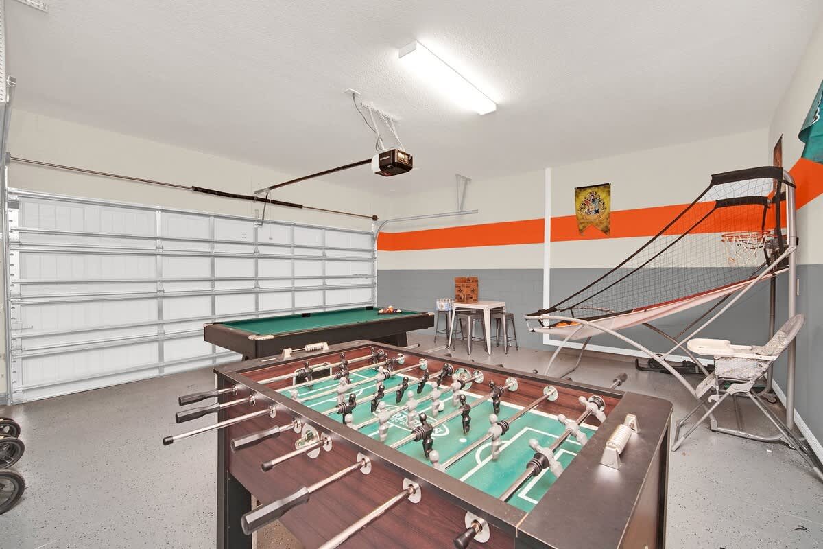 Welcome to our exquisite 7-bedroom villa nestled in the prestigious Windsor at Westside Resort! Ideal for large families or groups, this luxurious home boasts a private pool, expansive living room, and a fully equipped kitchen. Revel in the fun of the in-house game room with a pool table, and stay comfortable with air conditioning. A maximum of four vehicles is permitted for this property. The nearby clubhouse offers a resort-style pool with a waterslide, a lazy river, a fitness center, volleyba