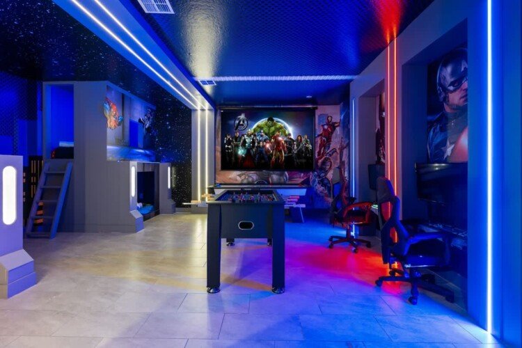 Looking for more than just a place to stay during your Orlando adventure? Mickey’s Hideaway is not your average vacation rental—it’s a private resort-style home packed with unforgettable experiences, custom themed rooms, high-end features, and nonstop fun for the whole family. Whether you’re planning a Disney trip or multi-generational getaway, this home was designed to deliver magic, comfort, and wow momen