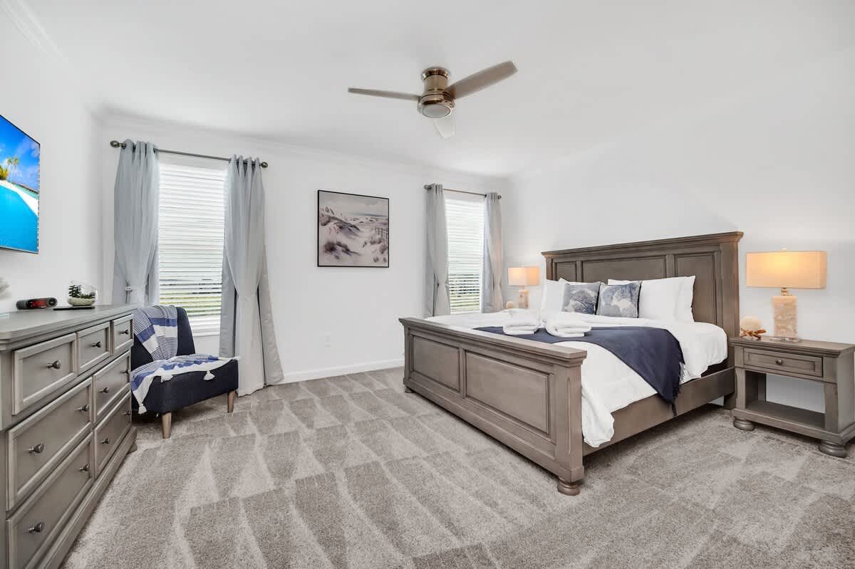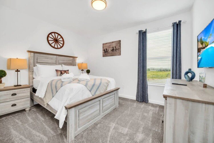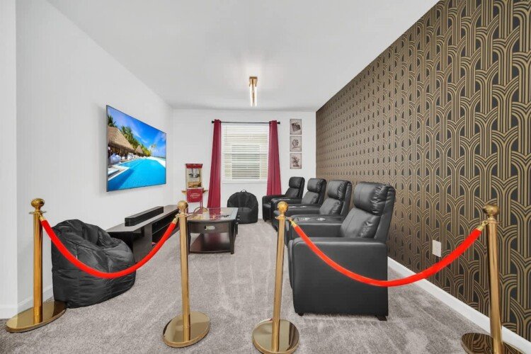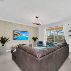 Discover the elegance of our 6-bedroom villa located at the core of Champions Gate Resort, ideal for large families or groups. Our abode boasts a private pool, an expansive living area, and a kitchen with all the necessary amenities. Delight in our game room, and enjoy the comfort of air conditioning. A brief stroll leads you to the Oasis Clubhouse, featuring heated pools, a lazy river, and more—proximity to renowned attractions like Disney and Universal Studios. Reserve your experience today!